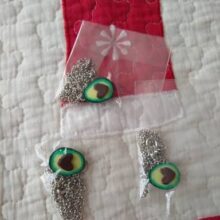 These Avocado necklaces come in a set of one necklace with the heart-shaped stone and the other without.