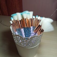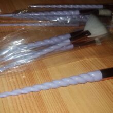 In general, the order is satisfactory, came quickly, the parcel was tracked. It was packed in a standard bag with a pup, as well as in a bag in which the brushes were lying in their individual packaging. Pretty soft brushes, pleasant to the touch. The plastic is slightly lighter than in the photo, I thought it would be better, but for such a price it's ok.