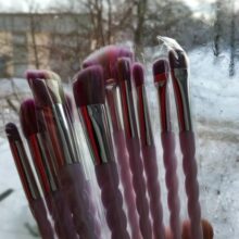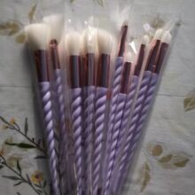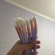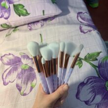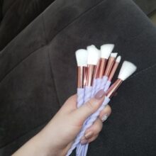 I really liked the brushes. Very soft, pleasant to face pile. The color of the handle is very beautiful, lilac with pearlescent shine. In the set as stated 10 brushes. I am very happy with this purchase.