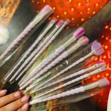 This unicorn design essential brush set gives you all the tools you need to apply makeup like a pro. These Cute Unicorn Makeup Brushes Set are assembled using the finest quality synthetic hair, soft and perfectly angles to contour, shade, highlight, etc. We love its trendy candy-cane twist handle shaped like a unicorn’s horn, making application easy and fun!