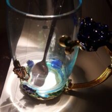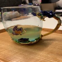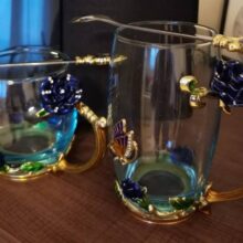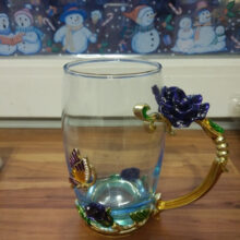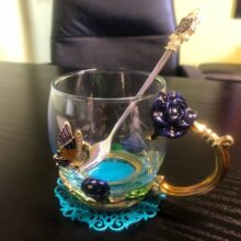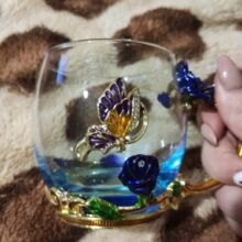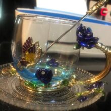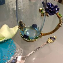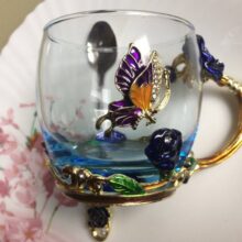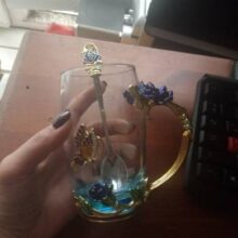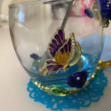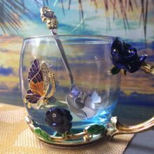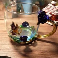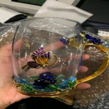 PERFECT HANDMADE ENAMEL CUP: The handmade enamel glass cup has an elegant style with butterfly and rose flower 3D designs. There are no cups exactly like yours in the world. Yours is only one and will never fade as time passed, even if you use the mug daily. The glass material of the cup is glittering and translucent, classic but refined and the noble stylish look is functional yet decorative.