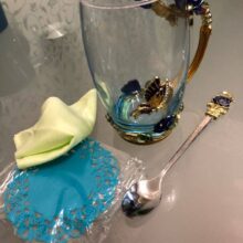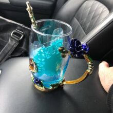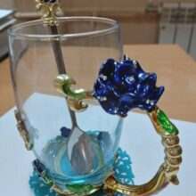 Handmade Beauty And Novelty Enamel Cup is made of high-quality eco-friendly metal and crystal clear glass, finished with crystals and enamel. This mug is a unique art between vintage, dreamy and luxurious style. It will improve your lifestyle and artistic accomplishment.