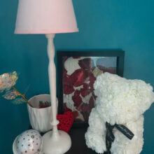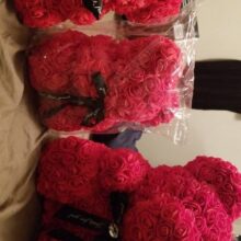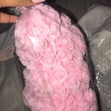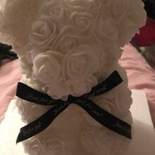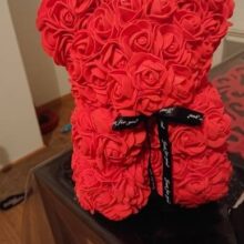 The size fits perfectly my theme. The teddy bear is good quality just one of the rose has a little red tone but we can’t really see it. I’m very happy about the product, it is really cheap for the quality, I recommand! The shipping was a little slow but worth it