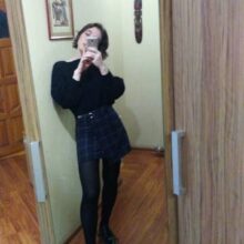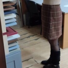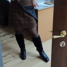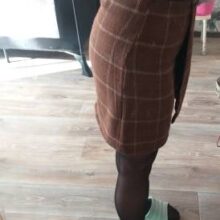 A good skirt for your money. The material is not too warm, but sometimes prickly. Behind on the lock, which is not visible. Front fake fly and strap on which there are rivets. Good coloring and style. Fits perfectly on 93 cm hips