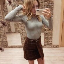 The skirt is very cool! But still it was necessary to take a larger size. This is straight in the skirt and very short. I wear it, but i feel a little uncomfortable about this length, i still have to pull it, i do not like it.